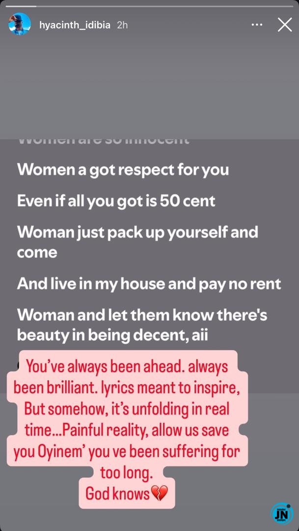 “You’ve always been ahead, always been brilliant. lyrics meant to inspire, but somehow, it’s unfolding in real time… Painful reality, allow us save you Oyinem’ you’ve been suffering for too long. God knows.