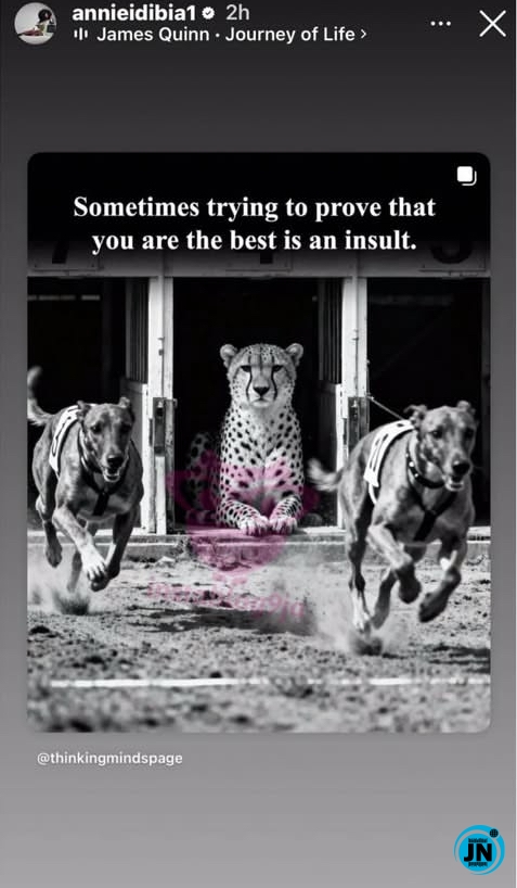 Amidst the online frenzy, Annie Idibia chose to share her thoughts on Instagram Story, posting a series of reflective messages that many interpreted as her commentary on the situation. In her first post, she wrote: “Sometimes trying to prove you are the best is an insult,” hinting at the pitfalls of constantly seeking validation or demonstrating superiority in relationships or public life.