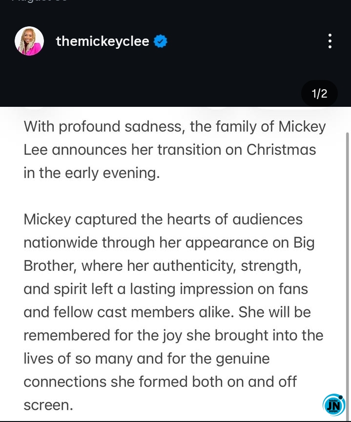 According to the family statement, Mickey Lee passed away on Christmas evening. While the exact circumstances surrounding her passing were not detailed, the family highlighted her impactful presence on the Big Brother show and the meaningful relationships she built both on and off screen.