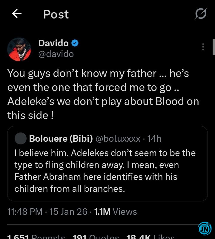 You guys don’t know my father … he’s even the one that forced me to go .. Adeleke’s we don’t play about Blood on this side.