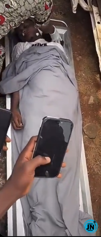 The heartbreaking clip captured the moment the 22-year-old Afrofuji artiste was brought down from a white bus upon arrival in Ayetoro, Ogun State, leaving fans and residents struggling to come to terms with the tragic reality.