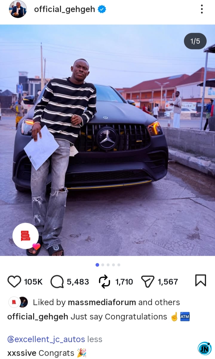 Popular social media influencer and self-acclaimed relationship expert, Geh Geh, has once again sparked conversations online after acquiring a brand new Mercedes Benz GLE 53, reportedly valued at a staggering N200 million.