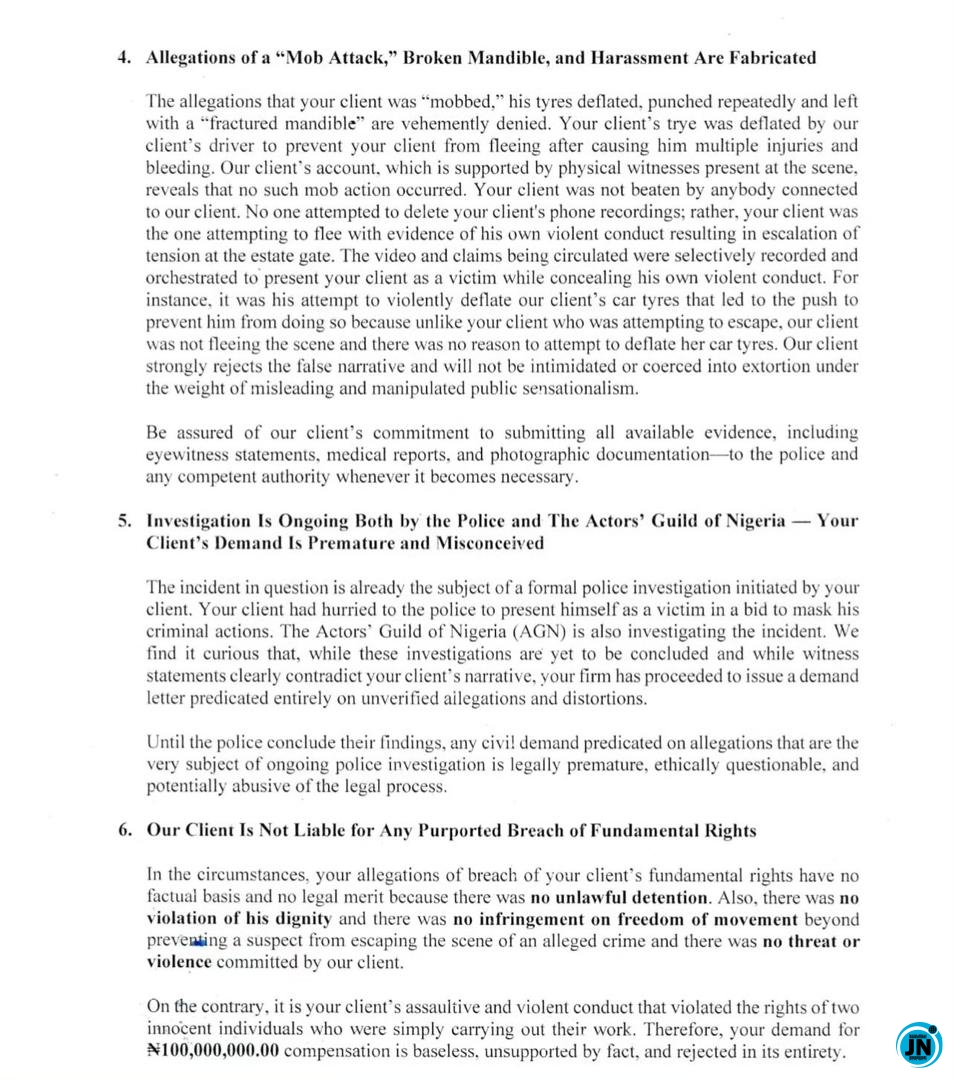 Arimoro is currently demanding ₦100 million in damages as well as a public apology. But Peggy Ovire’s legal response signals she is fully prepared to defend her name and will not succumb to what her team describes as false accusations and character defamation.