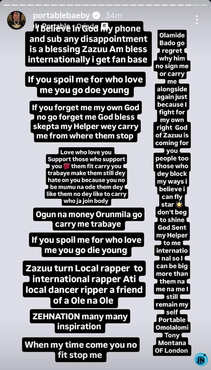 Portable concluded his message by reaffirming his belief that he is destined for global success, describing his struggles as parts of a larger story that will one day prove him right and silence his critics.
