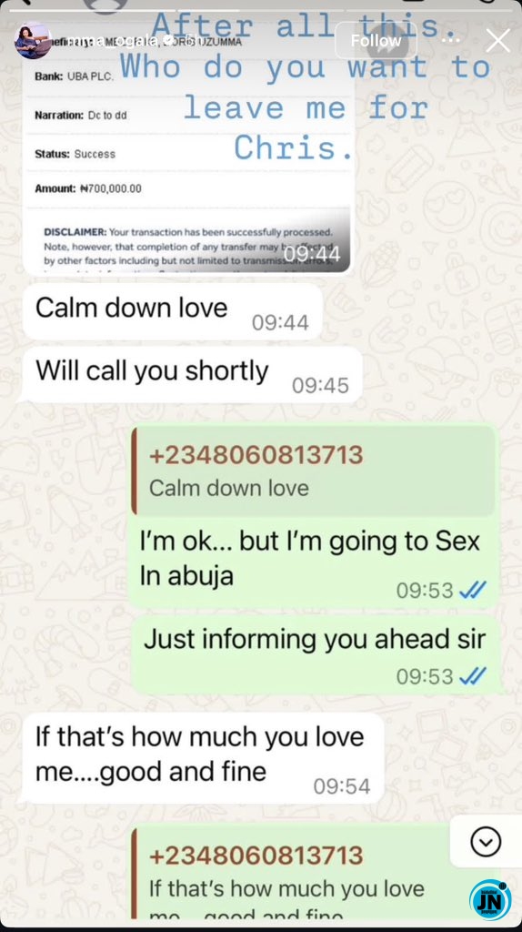 Alongside the shared chats and receipt, Doris Ogala posed a direct question to Pastor Chris Okafor, asking who he intended to leave her for after all they had shared together. She wrote, “After all this, who do you want to leave me for Chris,” highlighting her sense of betrayal and disappointment.