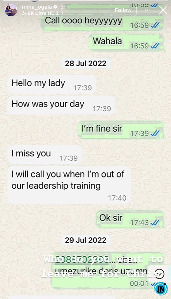 Doris Ogala leaks their chats