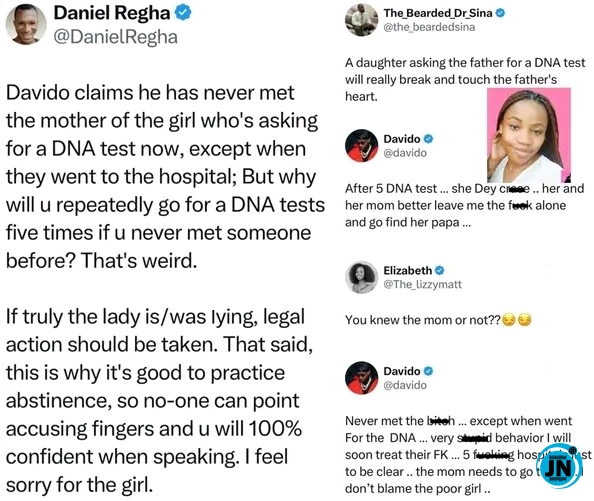 The controversy drew commentary from social media commentator Daniel Regha, who expressed doubts regarding Davido’s explanation. Regha questioned the logic behind undergoing five DNA tests with someone he allegedly had never met, calling the situation unusual and worth further scrutiny.