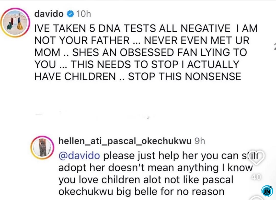 Davido further stressed that he had already taken multiple DNA tests in the past, all of which returned negative results, insisting that there was no truth to the claim.