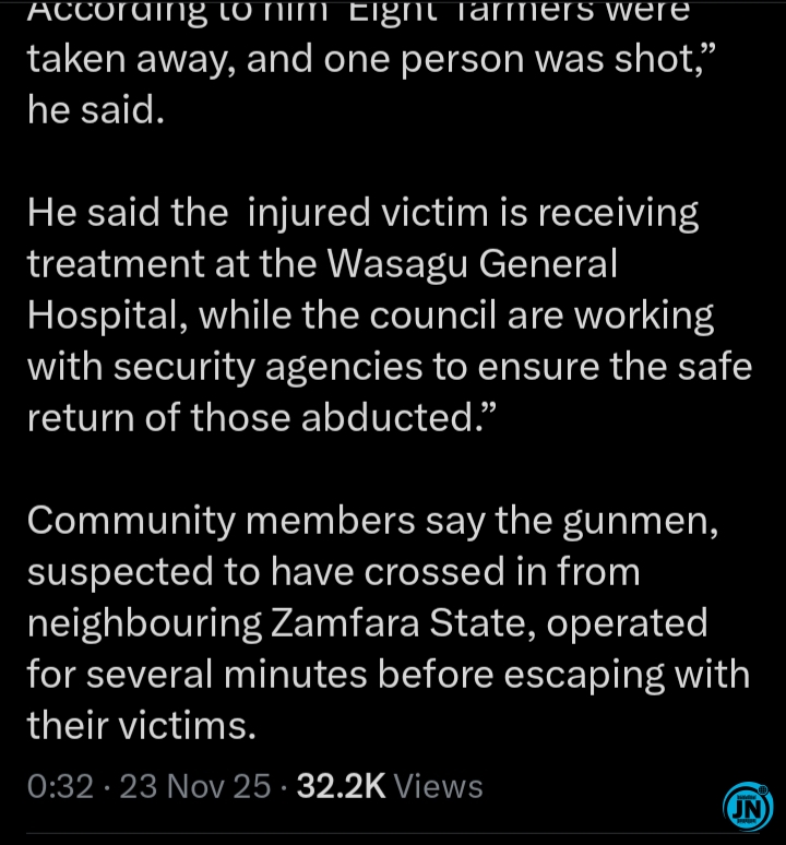 The attack was confirmed by Hussaini Wasagu, Chairman of Danko Wasagu Local Government, who explained that the assailants stormed the farmlands unexpectedly, overpowered the farmers, and made away with them before local residents could mount any resistance. The injured victim has been rushed to Wasagu General Hospital, where they are receiving medical attention. Security agencies have been notified, and ongoing operations are reportedly underway to secure the safe release of the kidnapped farmers.