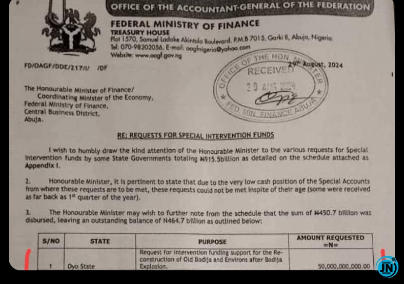 The release of these documents has sparked renewed discussion and scrutiny of the management of federal intervention funds in Nigeria, with observers and political analysts closely monitoring responses from both the Oyo State Government and other federal agencies. Fayose’s revelations have intensified calls for transparency, proper accountability, and ethical governance in handling public resources, particularly those earmarked for disaster response and community relief.