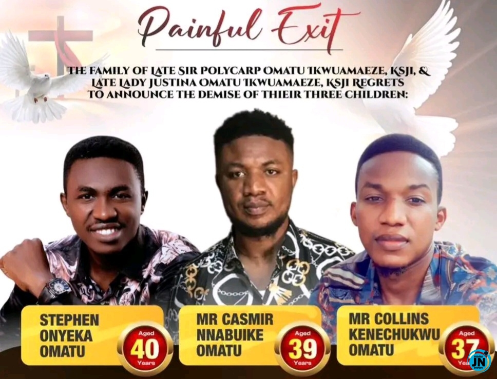 The family held the burial ceremony for the three brothers on 14th January 2026 in Ihiala, Anambra State. The somber event saw the gathering of close relatives, friends, and community members, all united in mourning and paying their last respects to the departed siblings. Emotional tributes and prayers were offered as the brothers were committed to the earth, with family members visibly overcome by grief at the loss of their loved ones.