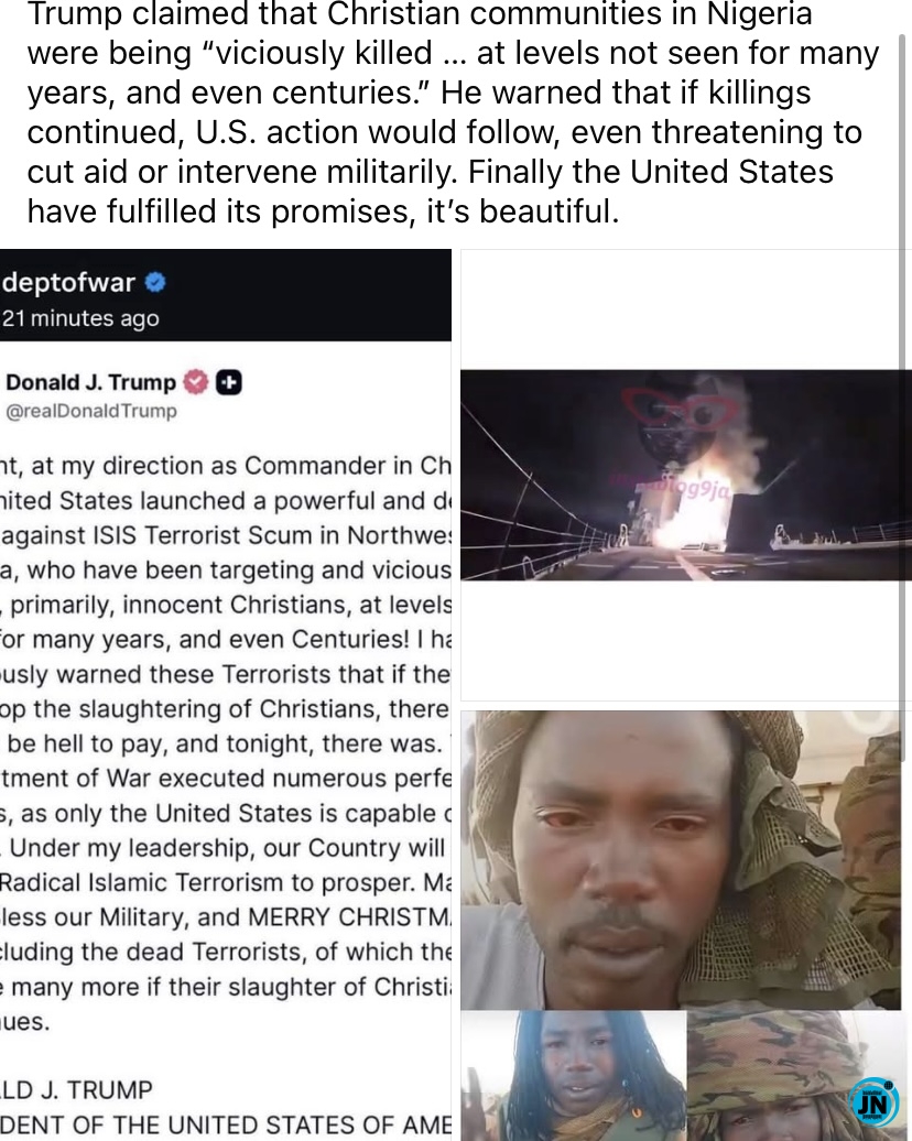 “This operation did not happen suddenly. It followed weeks of public warnings by President Trump. Between late October and November 2025, Trump repeatedly posted on his social media platform that the United States was closely monitoring Nigeria’s security situation, especially amid reports of rising violence against civilians.”