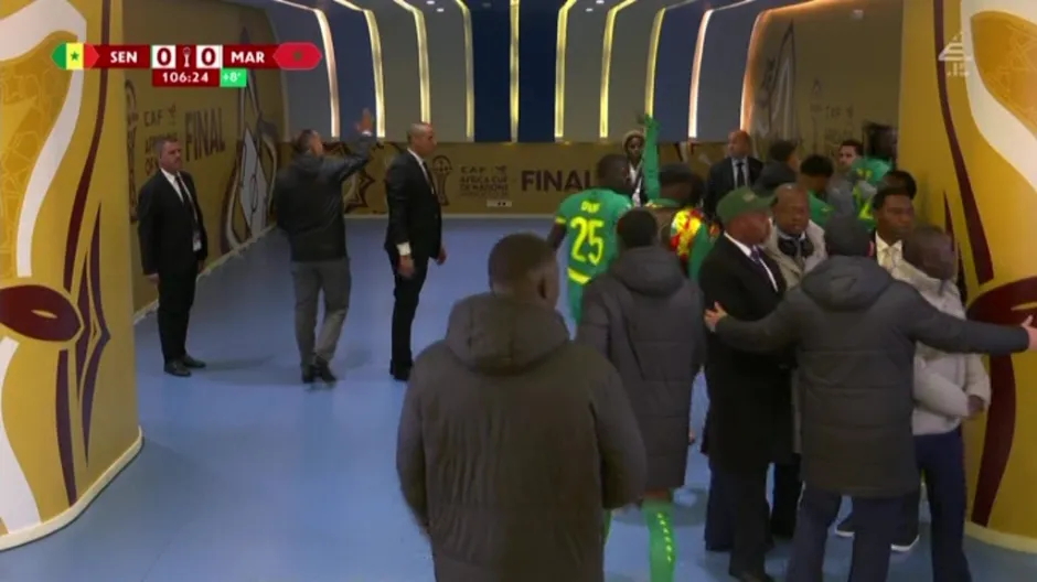 The tense atmosphere prompted Senegal head coach Pape Thiaw to instruct his players to leave the field in protest. Television footage captured the squad huddled near the touchline before several players headed down the tunnel, temporarily halting the match. The stoppage extended for over 15 minutes as confusion and agitation grew inside the stadium, leaving fans and officials in suspense over how the situation would be resolved.