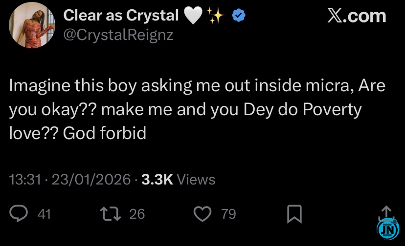 “Imagine this boy asking me out inside Micra, Are you okay?? Make me and you Dey do Poverty love?? God forbid.”