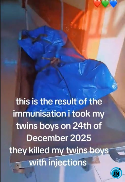 In the viral video posted on TikTok, Alozie was seen showing the remains of his twin boys placed in separate body bags, a moment that drew emotional reactions from thousands of viewers.