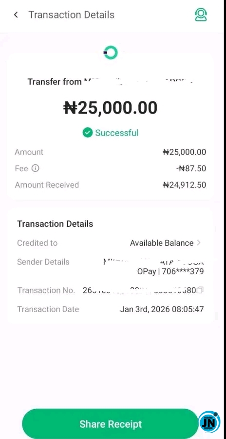 A Nigerian mother of two has taken to social media to express frustration and concern after a tax charge was deducted from a ₦25,000 bank transfer, sparking fresh conversations around Nigeria’s 2026 tax reforms.