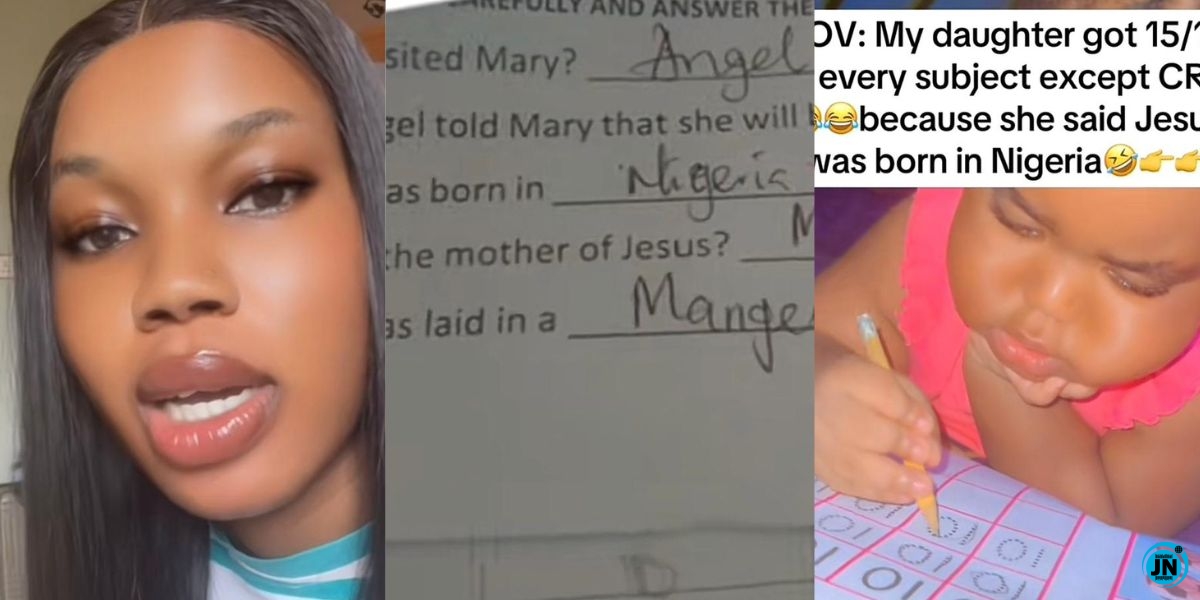 A Nigerian mum has gone viral on social media after sharing a hilarious incident involving her young daughter, who confidently wrote in her school exam that Jesus was born in Nigeria. This bold answer reportedly caused the little girl to fail the CRS test, despite excelling in all other subjects.