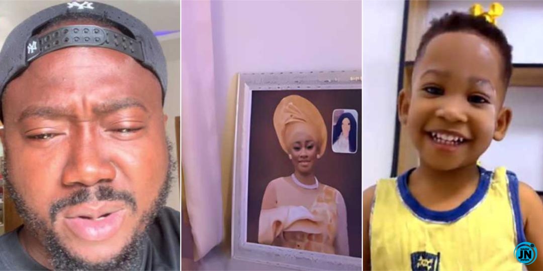 A Nigerian father has shared a heartbreaking personal moment on social media, revealing how his young son reacted after coming face-to-face with his late mother’s framed photograph inside their home.