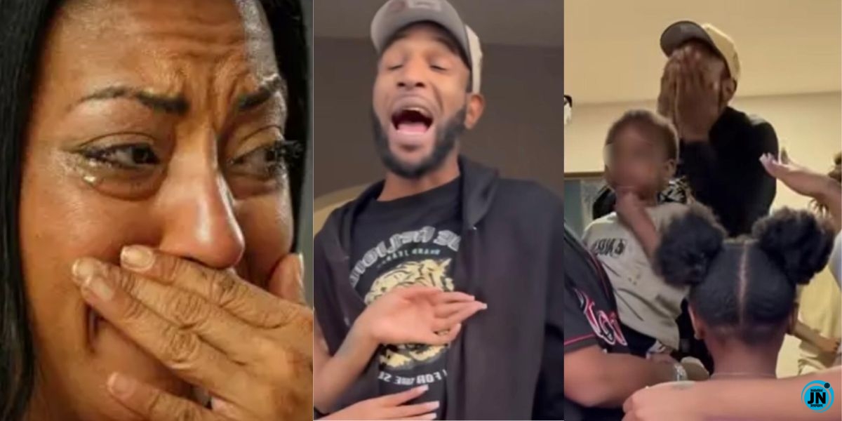 According to a post shared by @amebogist on Instagram, the man initially asked the woman and her children to leave the house in order to give him space to process the painful truth. This decision was reportedly motivated by his need to emotionally distance himself from the situation, as he was not prepared to face them immediately after learning about the deception. Witnesses noted that the household atmosphere became tense as family members tried to intervene on behalf of the children.