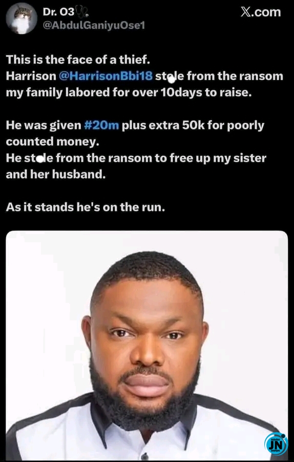 According to the X user, @Abdulganiyu0se1, Harrison Gwamnishu reportedly received a sum of ₦20 million along with an additional ₦50,000 from concerned contributors who donated toward securing the freedom of the victims.